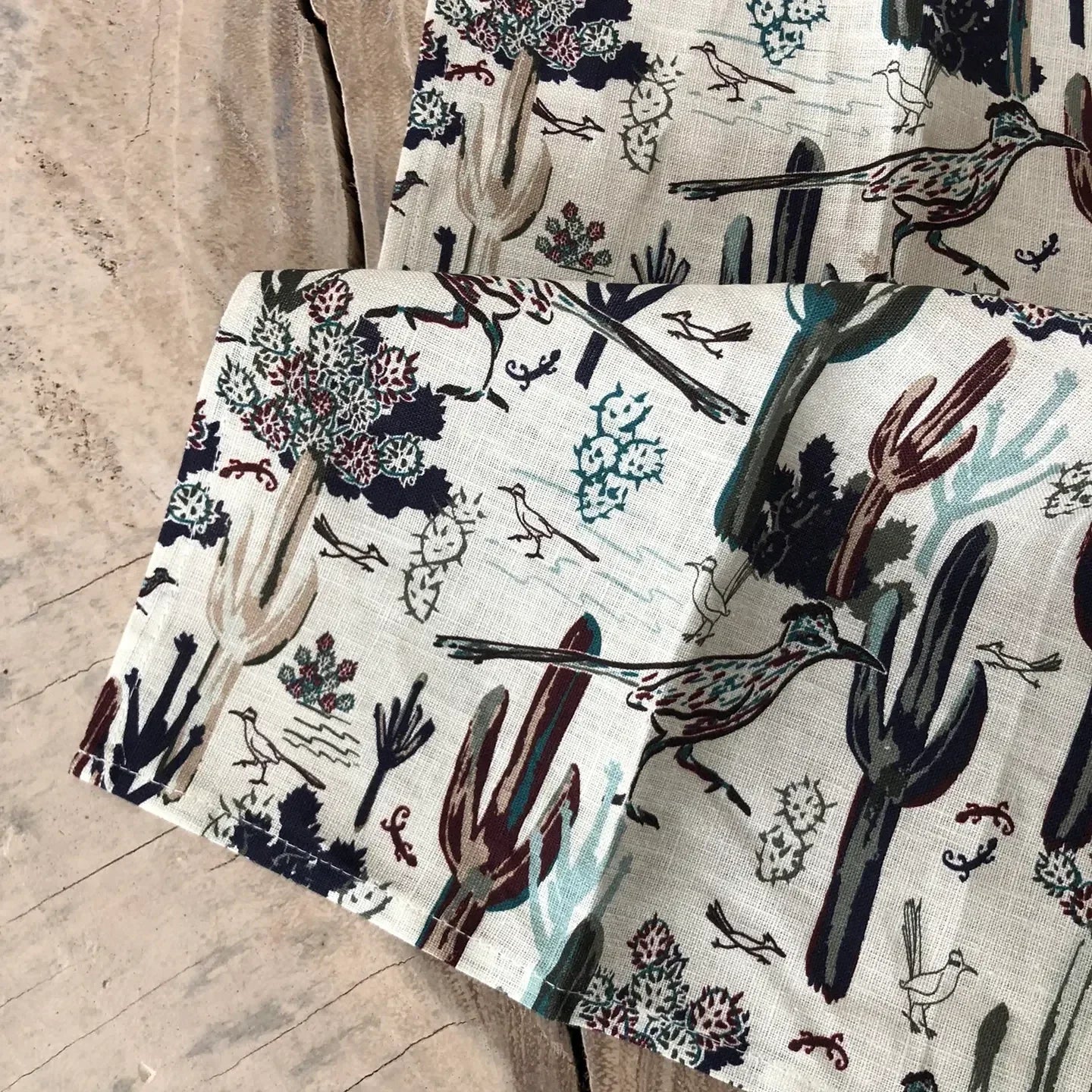 Made from 100% flax linen, these free-flowing Desert Sketchbook tea towels, which double as dinner napkins and tablescapes, get softer with each wash and have a convenient inner hang tag for display and air drying.