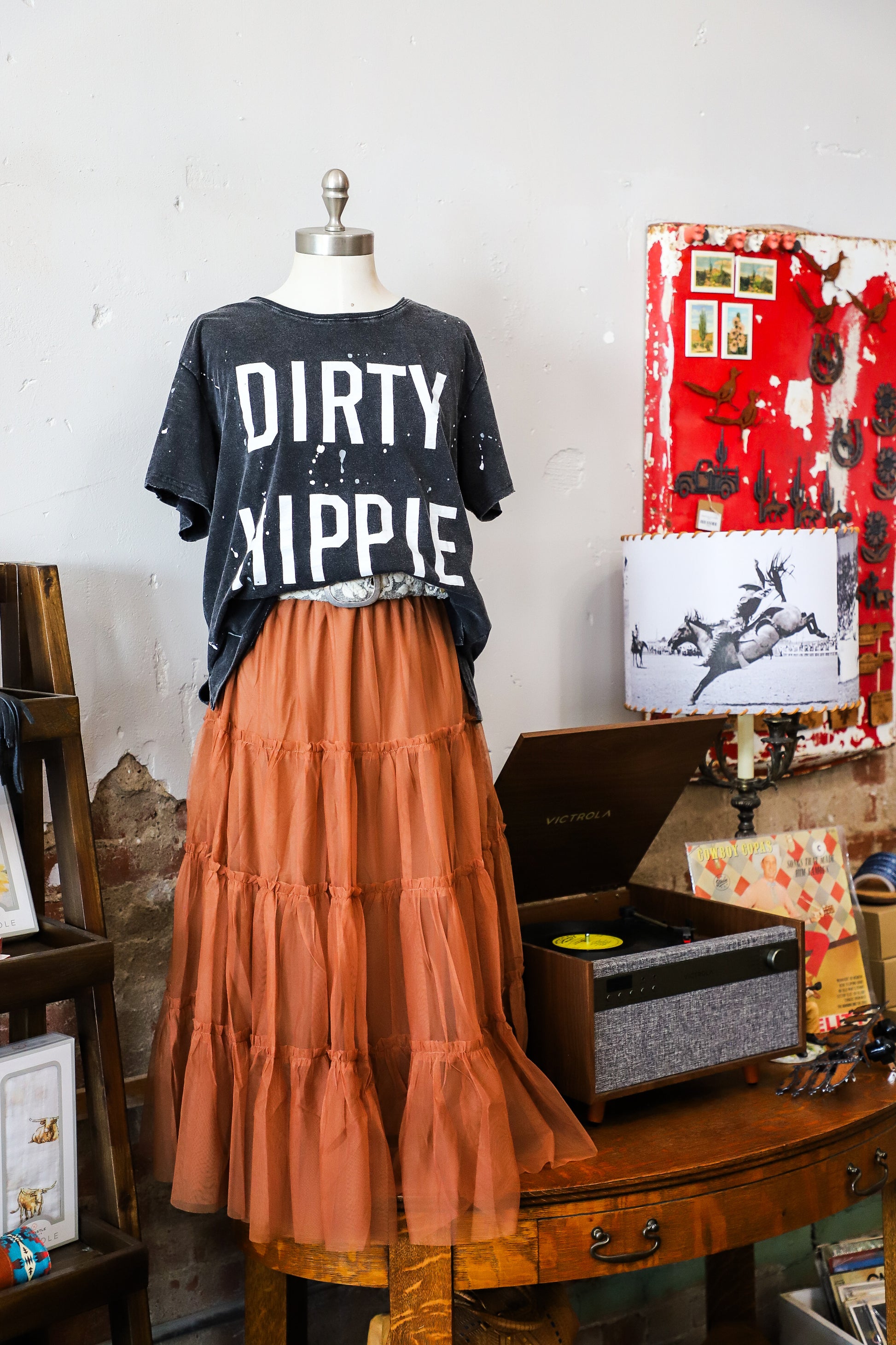Kick up a little dust and a whole lotta style in this prairie-perfect tiered tulle skirt! With its warm rust hue and dreamy layers, it’s got the spirit of the Wild West and the grace of a twirl-worthy dance floor. Whether you’re two-steppin’ under the stars or brunchin’ on the ranch, this flowy beauty is ready to ride shotgun with your favorite boots or flats. Yeehaw meets ethereal charm—this skirt’s got it all!
